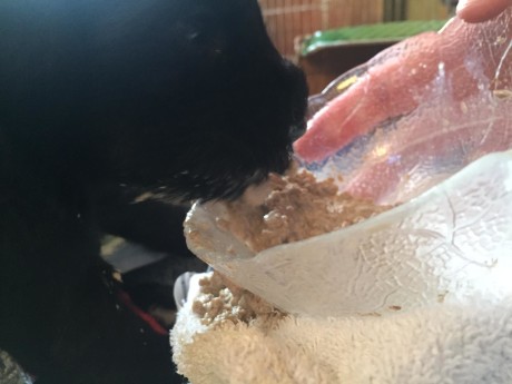 Und so sieht die Schnauze hinterher aus! Gwenda übernimmt aber gerne das Resteessen und das Sauber lecken.